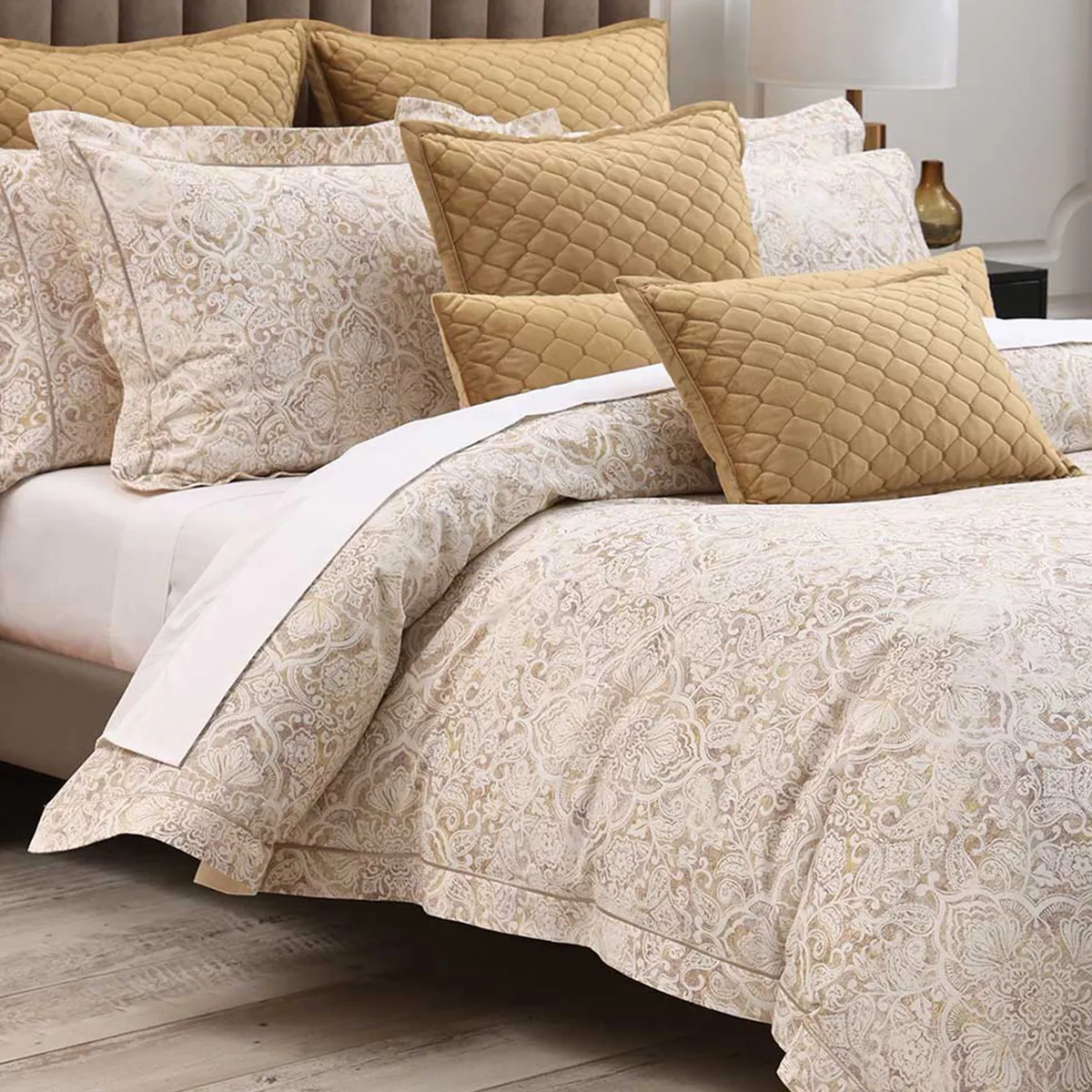 Transform your bedroom with the Mayfair Natural Double Duvet Cover Set. Designed with a classic gold damask print, oxford flange, and satin stitch border, this set embodies timeless luxury. Made from premium 300TC cotton sateen, it provides breathability, softness, and long-lasting durability. Perfect for double beds, it pairs elegantly with latte sheets and Turner Gold accessories.