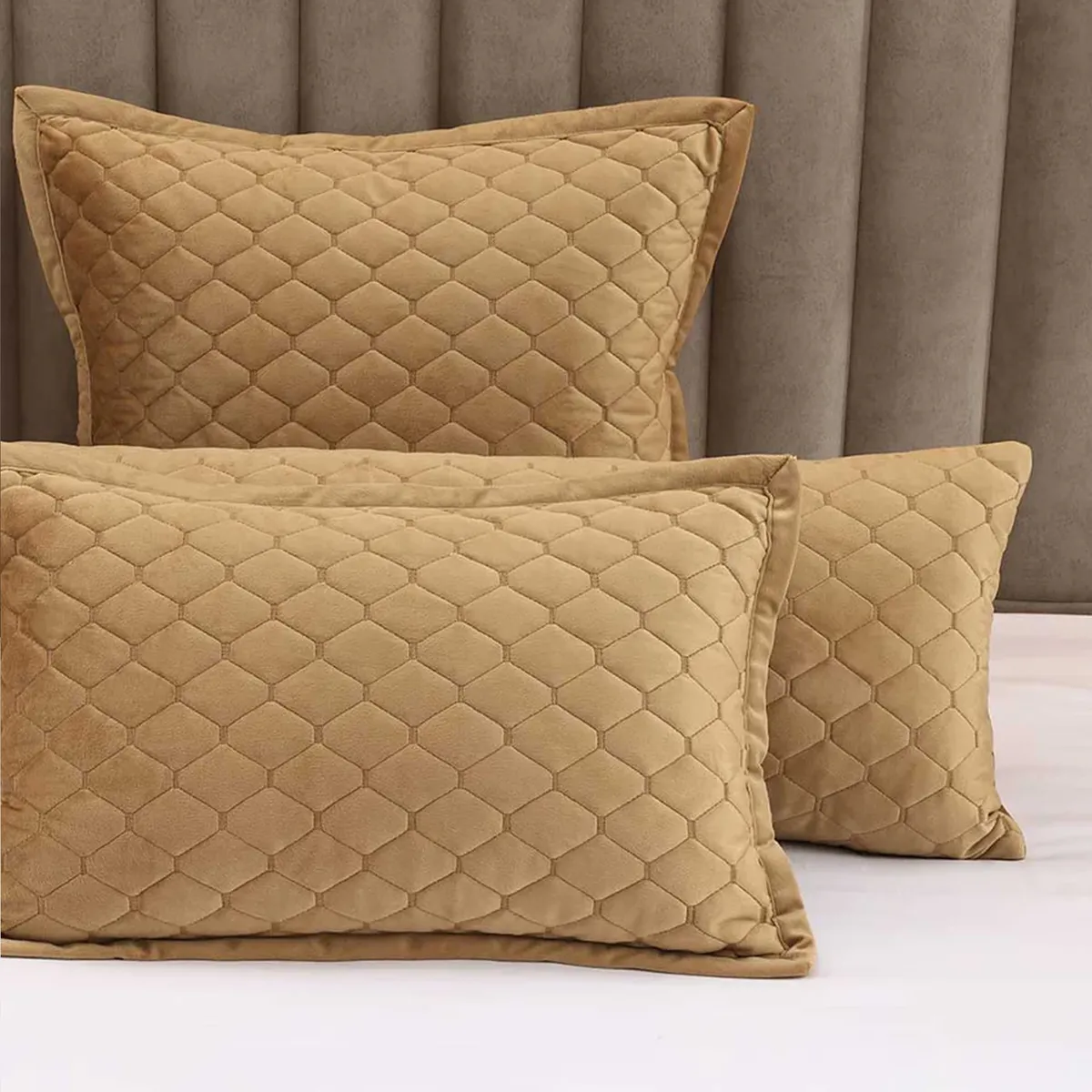 Add a plush layer to your bed or seating area with the Turner Gold Cushion 50x50cm. With a quilted velvet texture on both sides, it enhances your d�cor with warmth and elegance.
